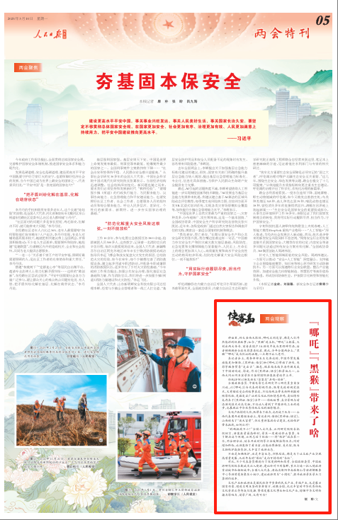 神话里,孙大圣西天取经,哪吒大闹龙宫,都是人们耳熟能详的经典故事;如今,“黑猴”进主机,“哪吒”上银幕,又创出两大传奇。前者在国产3A游戏中成为里程碑作品,后者频频刷新全球电影票房纪录。因此,今年全国两会上,“黑猴”“哪吒”成为热议的话题,一点都不让人意外。