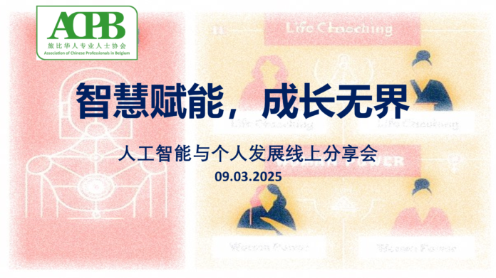202539日,比利时旅比华人专业人士协会(ACPB)成功举办了“智慧赋能,成长无界”人工智能主题分享会。本次线上会议恰逢三八国际妇女节之际,吸引了众多华人专业人士、留学生、企业代表以及媒体朋友的广泛关注。三位杰出的女性讲者——李诗吟研究员、陈安琪议员和人生教练李哲女士,分别围绕AI技术前沿、职业突破和终身成长进行了精彩的主题分享。