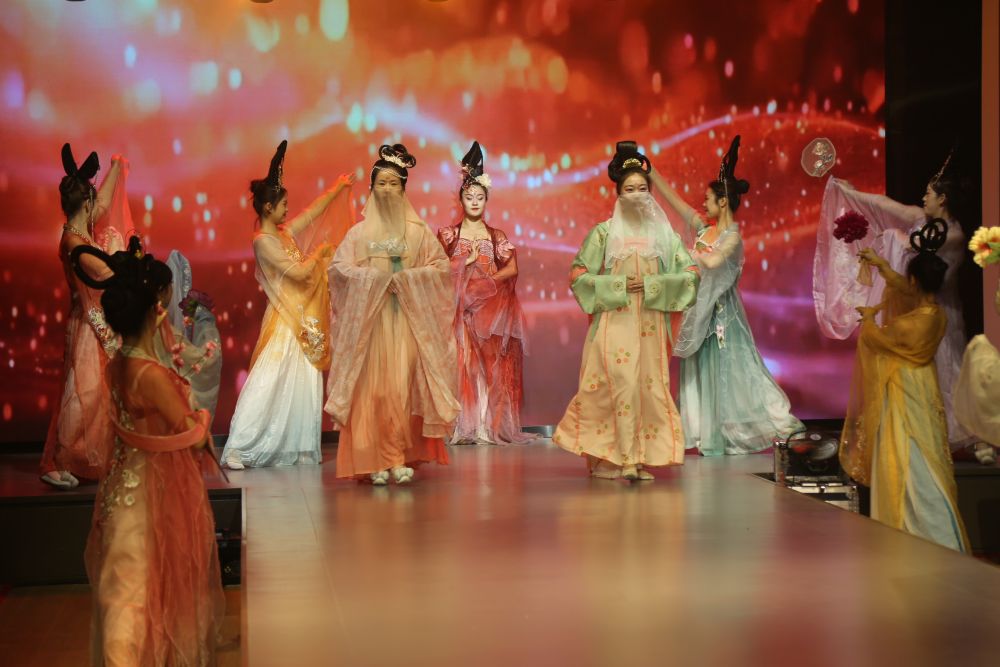 在河南洛阳龙门古街入口的“鲤跃龙门”演艺餐饮主题餐厅,演员们身着华服、头戴簪花、手执团扇,吆喝声、叫卖声、嬉笑声此起彼伏,一幅“盛唐市井”生动地展现在眼前。