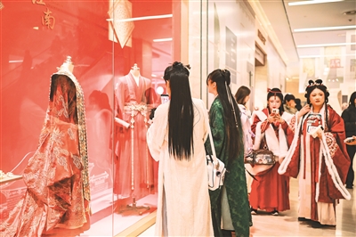 观众观赏“锦绣江南”特展展出的影视剧服饰。