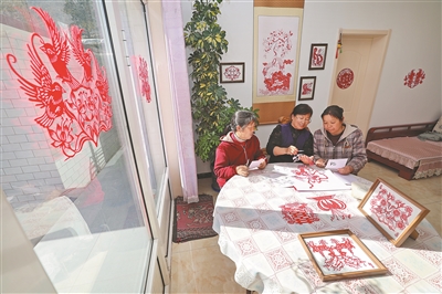 自去年以来,唐妈妈剪纸,女儿尝试直播卖货,儿子拍摄视频,丈夫出谋划策,一家人都动员了起来。“好在有村里的阿姨、婶婶们来帮忙,心里踏实。每半天付给她们每人几十元钱,大伙说着笑着就把活给干了,感觉特别好!”韩国栋说。