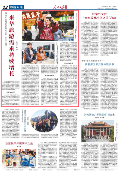 中国旅游研究院近日发布《中国入境旅游发展报告2024—2025》(以下简称《报告》)。入境旅游已成为彰显中国高水平对外开放的重要载体。随着入境旅游签证、支付、住宿等便利化政策红利的不断释放,2024年入境游市场恢复增长态势明显。