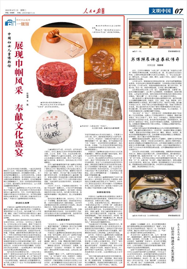 “中国妇女儿童博物馆2010年正式对外开放,致力于收藏、保护、研究和展示不同历史时期中国妇女儿童具有历史、艺术、科学价值的见证物,传播中华民族妇女优秀传统文化,并开展主题鲜明的社会教育活动,为观众奉上丰富多彩的文化盛宴。”中国妇女儿童博物馆馆长刘华彬说。