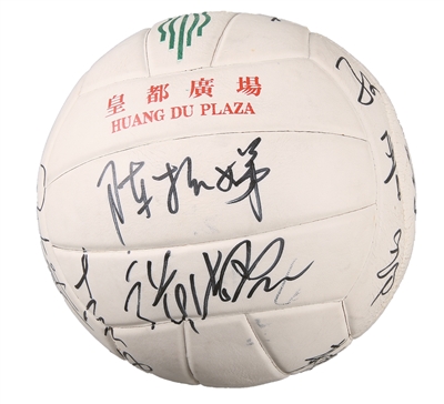 20世纪80年代中国女排赢得“五连冠”后队员签名的排球。
