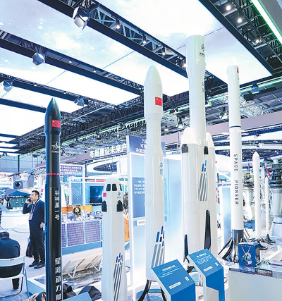 3月28日,在中关村展示中心常设展内,参观者在商业航天展示区域内参观。新华社记者 鞠焕宗摄