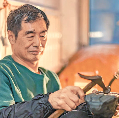 很快,最后一双鞋补好了。陈忠安细致地擦拭补鞋机,揽过工具箱放到轮椅上,准备回修鞋店。
