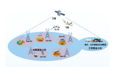 6G空天地一体化、多频段融合组网示意图。中国移动研究院供图