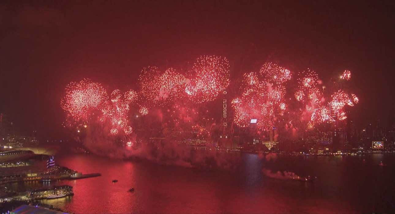 煙花匯演以「幸福樂章」為題,分為金、木、水、火、土五幕,歷時約12分鐘;其中一個亮點是有煙花圖案用天藍、粉紅等五層煙花分層發放,名為「繁花盛放」,亦有集合七色彩煙及煙花的「七彩祥雲」圖案,象徵帶來祥雲瑞彩之兆。