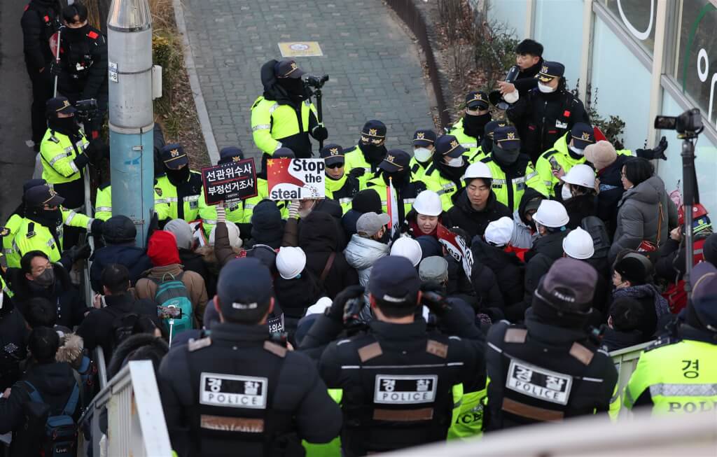 執行逮捕的檢警調在與衛戍人員對峙1個多小時後,於上午10時多突破封阻抵達尹錫悅官邸建築前,但又遭到總統警衛處人員攔阻。