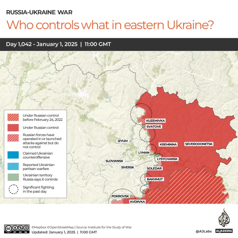 俄羅斯在烏克蘭東部頓涅茨克地區部分地區逐步、艱難地推進,並在2024年成功奪取了4168平方公裡的田地和廢棄村莊——相當於該國0.69%的領土。