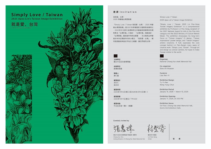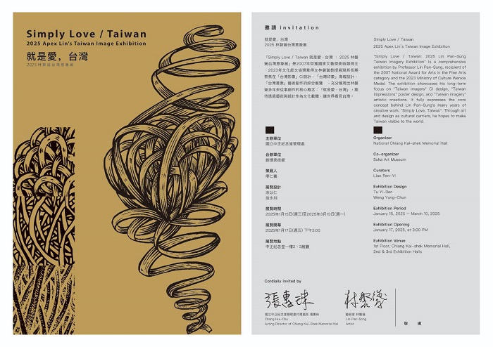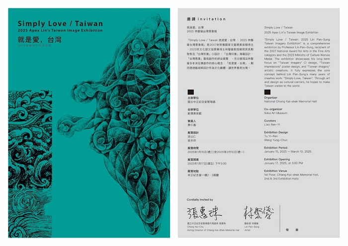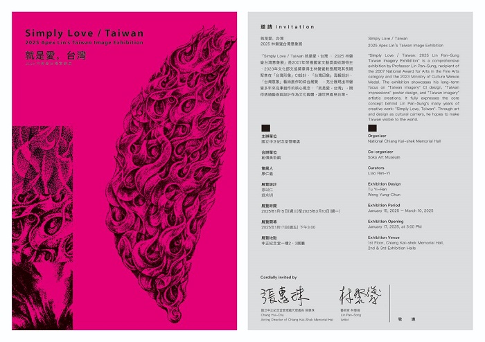 【記者李丹諾/臺北報導】受台北市中正紀念堂邀請,國立臺灣美術館前館長廖仁義擔任策展人的「就是愛,台灣:Simply Love/Taiwan」展覽,1月15日至3月10日將於中正紀念堂第二、第三展覽室隆重展出。開幕典禮定於1月17日(週五)下午3時舉行。