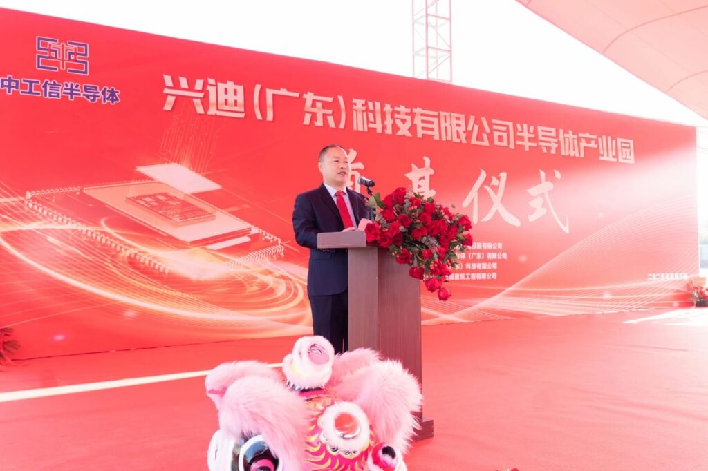 儀式現場,一片歡騰,李靖元會長(興迪(廣東)科技有限公司總經理兼廣東乾誠建築工程有限公司董事長)發表了熱情洋溢的致辭。他表示,你們的到來,不僅為儀式增添了濃墨重彩,更是對興迪產業園實力與願景的高度認可。興迪科技將以此次項目為契機,不斷提升自身技術實力和生產能力,努力滿足國內對高端半導體材料的需求。同時,他也對各級政府領導、社會各界以及合作夥伴的支持表示衷心的感謝。