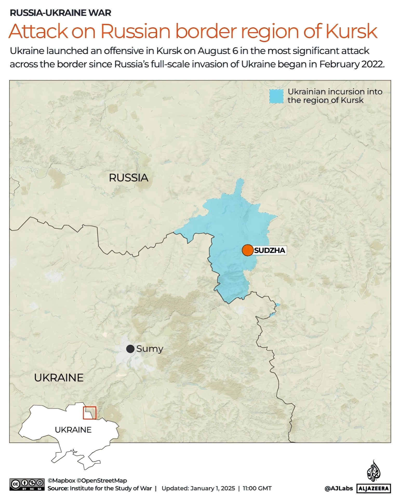 烏克蘭可能試圖奪取位於蘇賈東北約70公裡(45英里)庫爾恰托夫鎮的俄羅斯核電站,並可能試圖奪取30公裡(20英里)外的庫爾斯克地區首府。