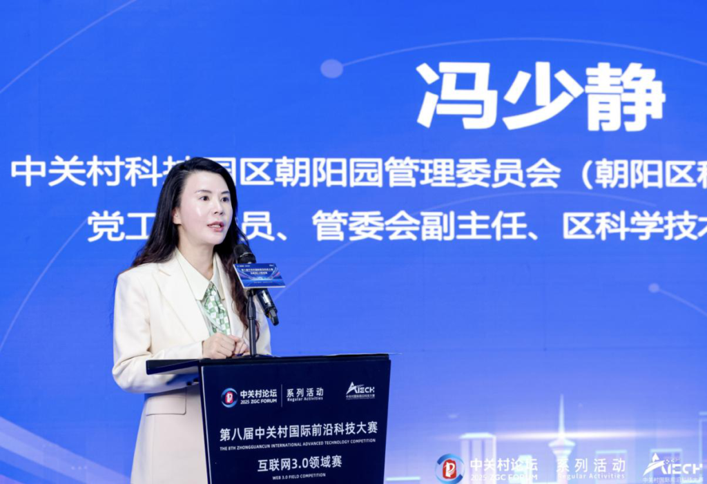 中關村科技園區朝陽園管理委員會(朝陽區科學技術和資訊化局)黨工委委員、管委會副主任、區科學技術和資訊化局局長馮少靜發表致辭。她表示:近年來,朝陽區結合區域優勢,旗幟鮮明地實施“商務+科技”雙輪驅動戰略,聚焦“3+X”產業方向打造數字經濟新格局,在互聯網3.0領域成績斐然。通過整合產業生態要素,一是推進關鍵核心技術攻關,落地轉化諸多前沿成果;二是建設系列共性技術服務平臺助力中小企業;三是設立互聯網3.0應用場景研究院推動多領域標杆應用場景建設;四是構建產業集聚區完善生態體系;五是成立中新互聯網3.0創新孵化中心、京港互聯網3.0產業中心等國際化開放交流合作平臺。如今區內互聯網3.0產業已達到全市領先水準。