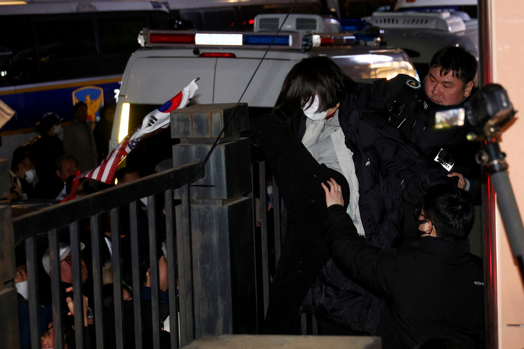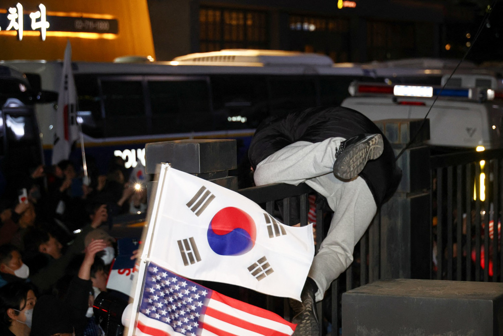 韓國首爾西區地方法院19日凌晨以涉及叛亂罪和濫用職權為由,裁定羈押總統尹錫悅,他也成為韓國憲政史上首位遭法院批准逮捕的現任總統。裁決出爐後,聚集在法院外的大批尹錫悅支持者大為不滿,甚至有人砸破窗戶並闖入法院。