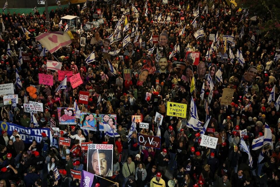 周六,成千上萬的以色列人聚集在全國各地,祈盼被關押在加沙地帶的人質如期獲釋,害怕以色列與巴勒斯坦哈馬斯之間的停火協議可能會被破壞。