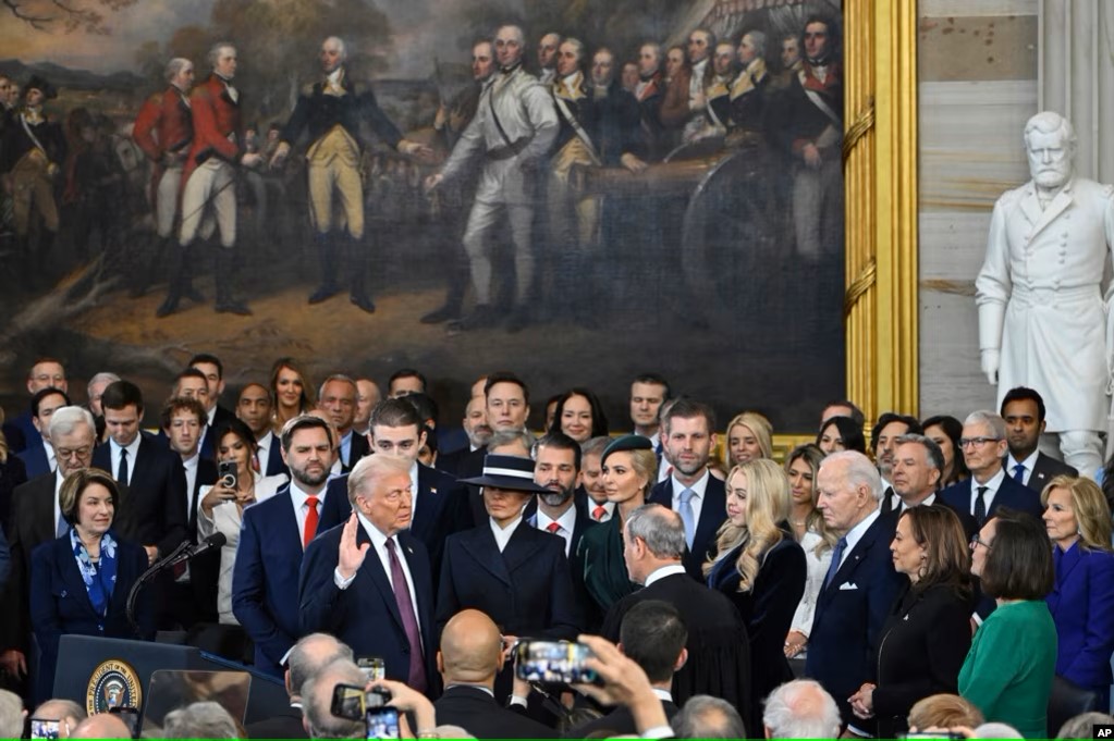唐納德·川普(Donald Trump)星期一(1月20日)在華盛頓美國國會大廈圓形大廳宣誓就任美國第47 任總統,正式開啟他不連續的第二個總統任期。在就職演說中,川普承諾恢復“美國優先”政策,推動“常理革命”,並以“黃金時代”形容他領導下的美國未來。在長達數千字的演講中,川普多次批評過去的政府政策,宣布將採取一系列行政命令,涵蓋移民、能源、貿易和國家安全領域。他宣稱,「美國的衰敗已經結束」。他在就職演說中宣布多項強硬政策,包括美國南部邊境進入國家緊急狀態,重新實施“留在墨西哥”的移民政策,並派遣軍隊到南部邊界,擊退對美國災難性的入侵,等等。