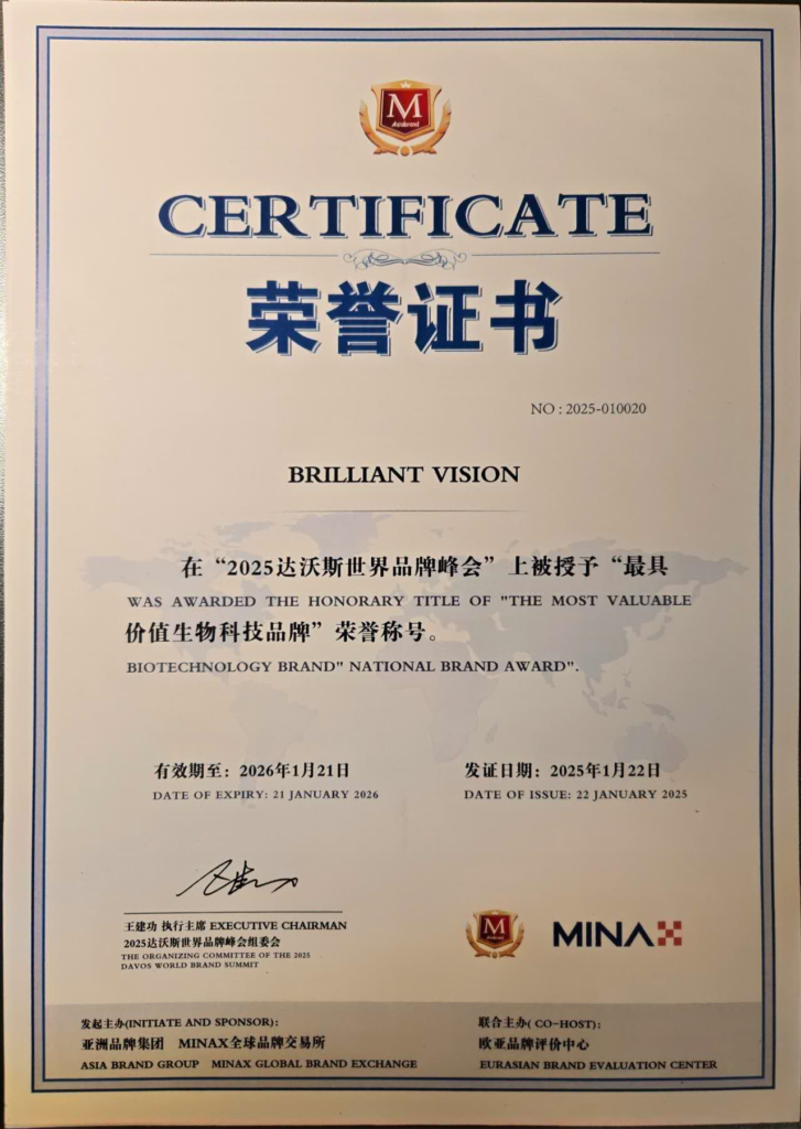 (中華新聞通訊社/中華時報讯)近日,在瑞士達沃斯舉行的 2025 年世界經濟論壇年會上, “本草明目(Brilliant Vision)”品牌憑藉其在全球眼健康與長壽領域的創新貢獻與卓越表現,榮獲“最具價值生物科技品牌”獎。此次榮譽不僅是對“本草明目”在生物科技與健康產業方面長期深耕的高度認可,更標誌著香港生物科技品牌在國際舞臺上嶄露頭角,彰顯了香港企業在全球健康產業中的影響力與領導地位。