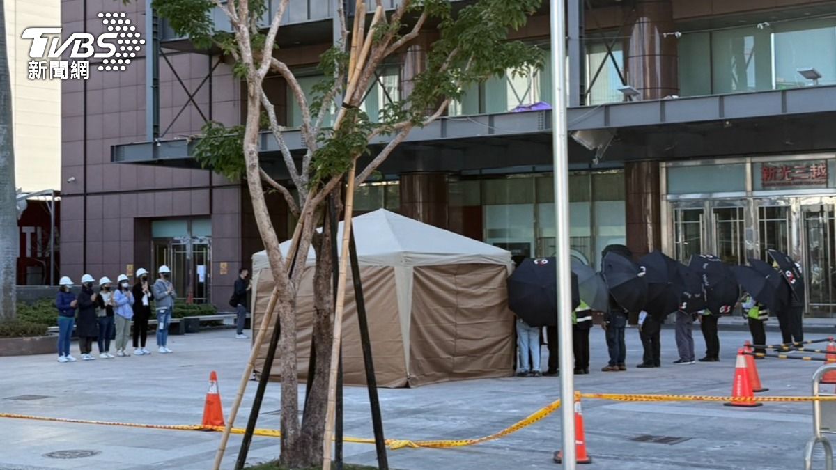 昨天下午,家屬從澳門飛抵台灣相驗,昨天(15)日下午,家屬回到新光三越大門口進行招魂,現場黑傘撐起,一旁道路進行交管,在帳棚內完成招魂儀式,現場搖鈴頻響,氣氛哀戚。
