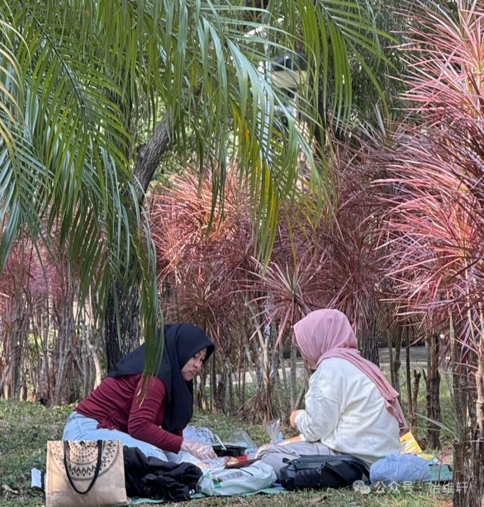 聚集在一起的女人們,有的在分享自製的小吃,像是油炸香蕉、椰絲餅、春捲和甜米糕。香氣四溢,令人垂涎。油炸香蕉外酥內軟,椰絲餅散發著熱帶的清香,春捲脆嫩可口,而甜米糕則是團圓的象徵。每一道小吃不僅是味蕾的享受,更承載著她們對家鄉的思念與連接。