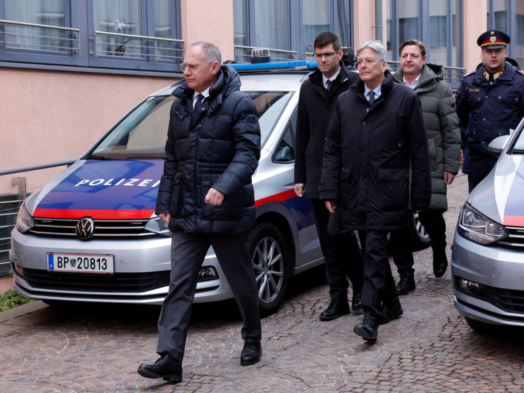 多名奧地利官員在菲拉赫市視察,並舉行記者會。(路透社)