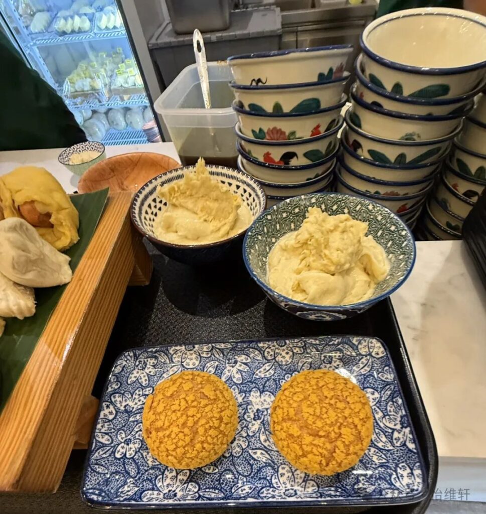 「99 Old Trees Durian」如同榴槤的殿堂,這裡的榴槤品種繁多,從香甜的乾黏到苦甜的奶油,甚至有著苦濃濕潤口感的果肉,各式佳品一字排開,讓人目不暇接。女兒對這股芳香情有獨鍾,女婿則捏著鼻子,卻也默默陪伴在旁。在這裡,室內外都有舒適的座位區,戶外坐在樹影下,彷彿置身於一場榴槤的盛宴。