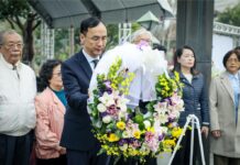 在228和平紀念日前夕,中國國民黨今天舉行「希望記取,弭平傷痛」活動,國民黨主席朱立倫偕同新北市228總會理事長洪顯詔、台北市228協會榮譽理事長黃秀婉、廖繼斌、台北市文化局長蔡詩萍,以及國民黨副主席夏立言、秘書長黃健庭等黨務主管,前往228和平紀念公園獻花致意。