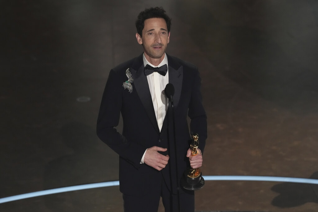「粗獷派建築師」的亞卓安布洛迪獲頒最佳男主角獎殊榮。(美聯社)