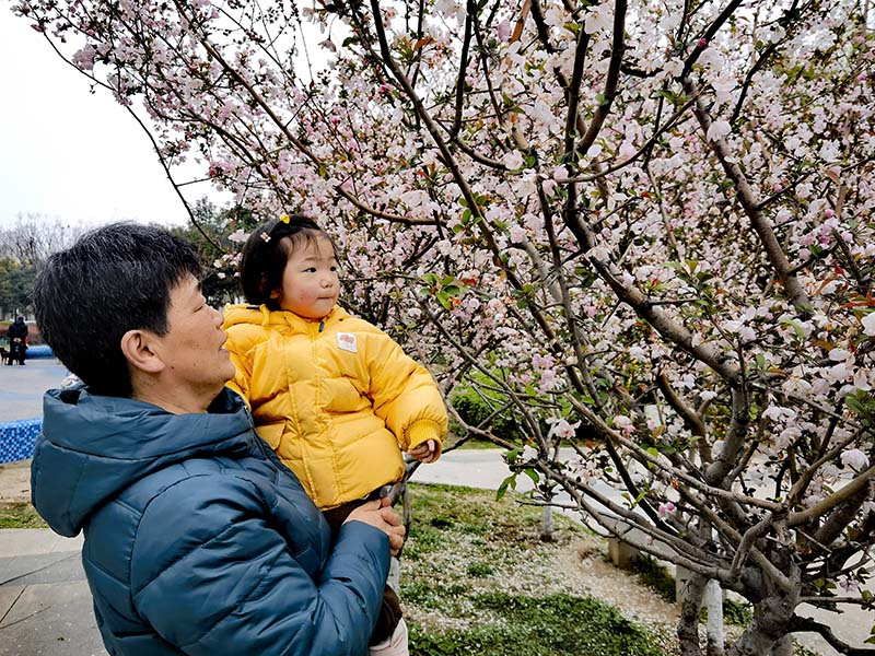 作品簡介:長輩懷抱晚輩,黃藍與粉白映襯,營造出溫馨的氛圍,傳遞著祖孫深情和春天的生機。2023.03.20攝于安徽阜陽市城河公園
