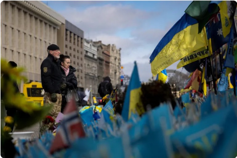 2025 年3 月4 日,人們在基輔獨立廣場觀看為烏克蘭而戰的陣亡士兵紀念碑(路透社)