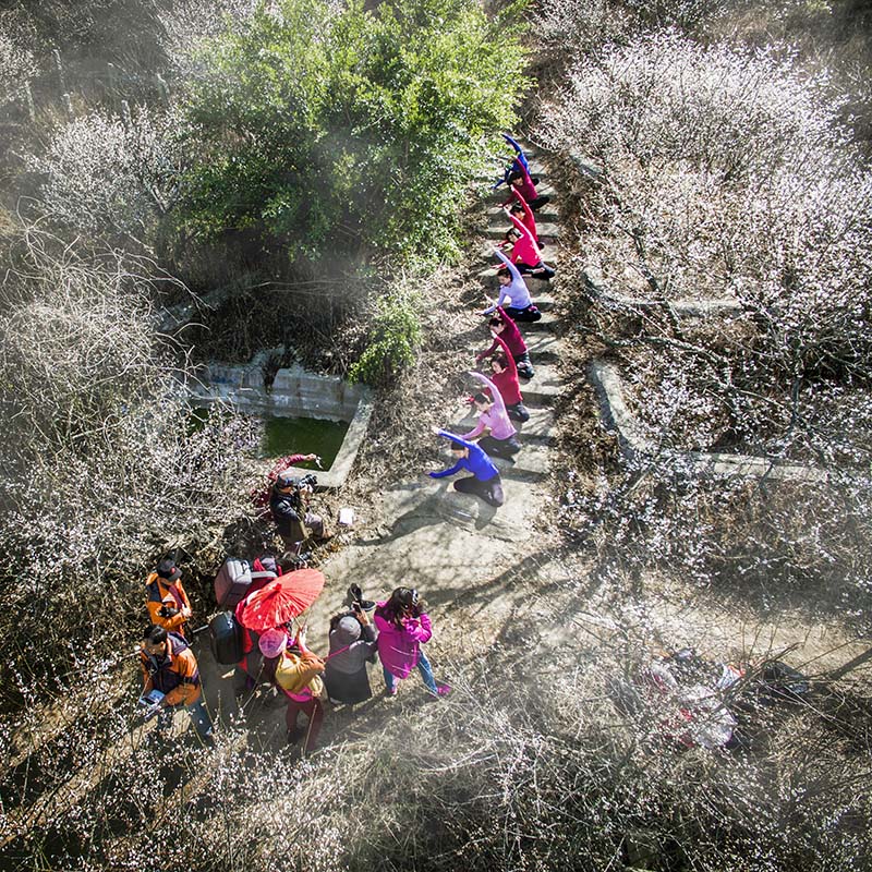 作品簡介:作品拍攝于福建省诏安縣,正當梅花盛開,壹群瑜伽愛好者到梅園表演瑜伽。