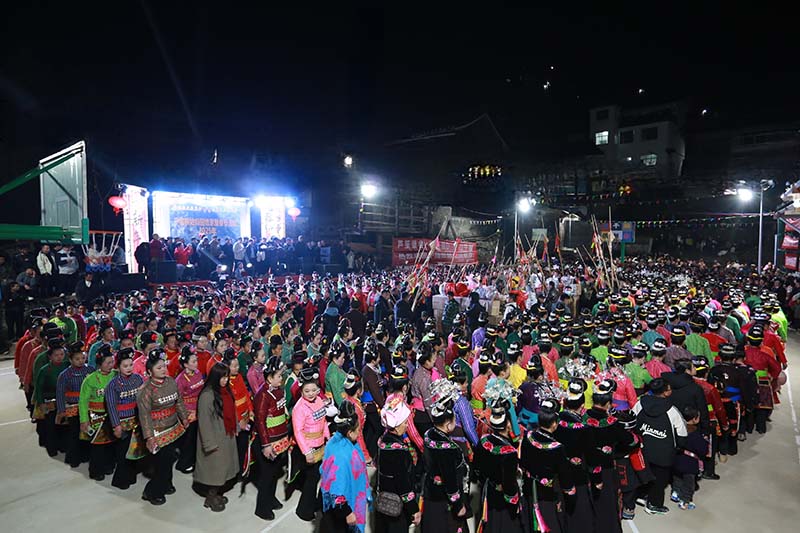 作品簡介:2025年2月3日,夜幕降臨,在貴州省黔東南苗族侗族自治州雷山縣大塘鎮幹腦村的蘆笙場上,燈光閃爍,人頭攢動,蘆笙陣陣,從四面八方趕來的苗族群衆隨著蘆笙的節拍,步履輕盈跳起蘆笙舞,歡歡喜喜慶祝新春佳節。