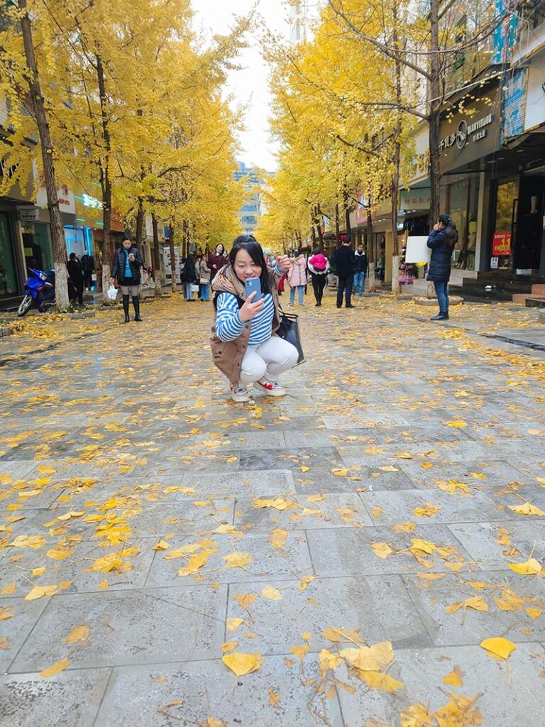 作品簡介:2022年11月,步入深秋時節,在貴州省盤州市紅果城區,金燦燦的銀杏葉緩緩落在街道上,成爲這座小城的打卡點,愛人潛心地用手機拍攝地上的銀杏葉,此刻我給她抓拍了壹張最美的瞬間,希望她如金黃色銀杏葉那般燦爛。