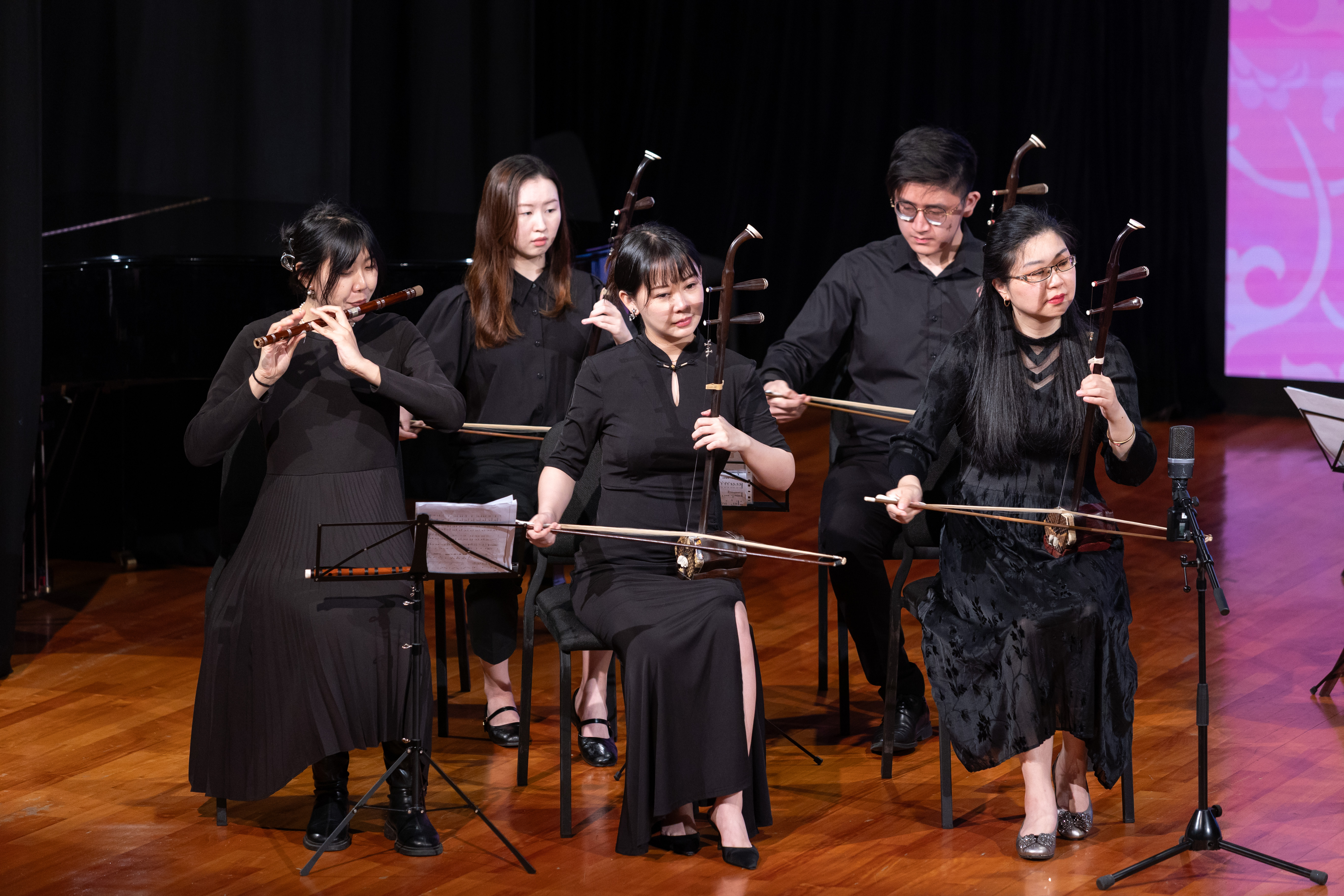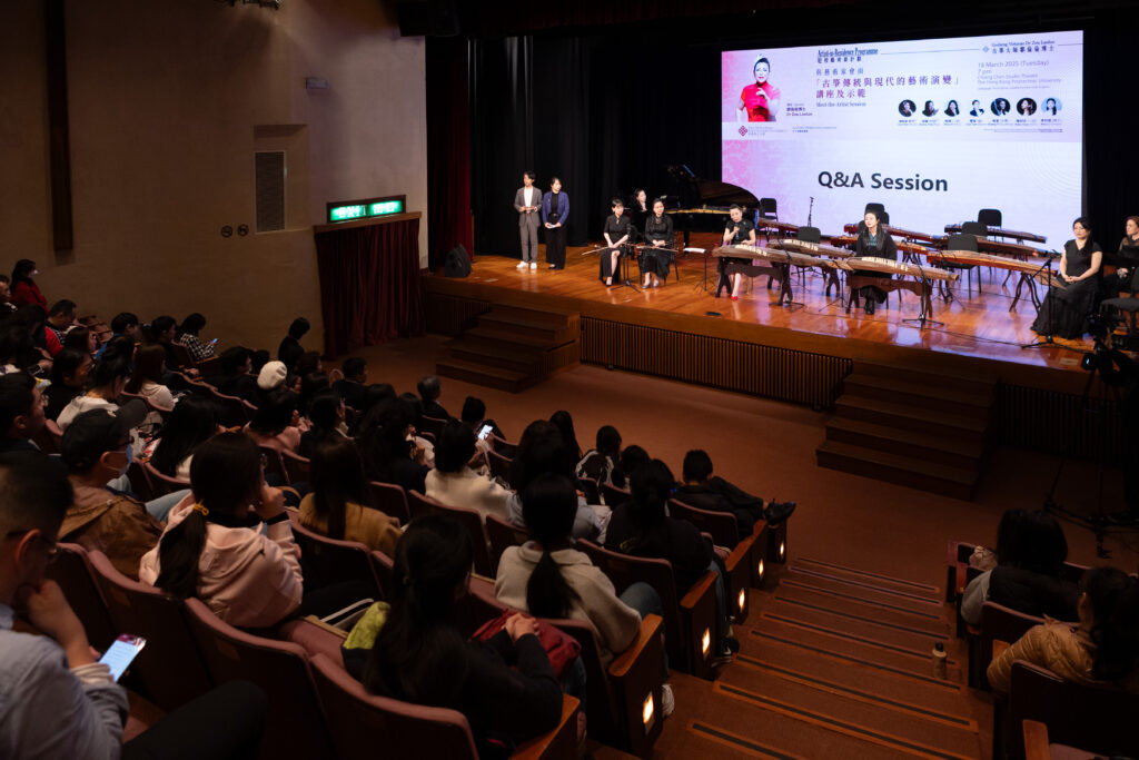 活動當晚,黃國賢副校長及楊立偉副校長與校董會成員、師生及音樂愛好者齊聚一堂,共同欣賞鄒博士的精彩演示。鄒博士不僅展示了古箏的演奏技巧,還與其他藝術家如鋼琴家Lisa陳、二胡演奏家周翊等展開了一系列精彩的音樂交流。