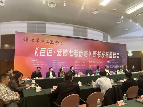 中華新聞通訊社/中華時報 3月23日訊(記者 悅聲) 3月22日,由中國文聯民間文藝藝術中心、江蘇省民間文藝家協會、江蘇人民出版社、宜興市政協主辦的《巨匠·紫砂七老傳略》新書發佈座談會在京舉行。發佈會現場,來自眾多文化界人士、專家學者齊聚一堂,深入探尋紫砂文化的深厚底蘊與未來發展之路。