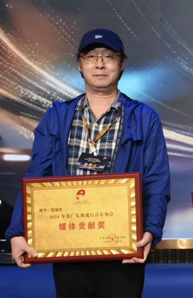 頒獎典禮彙聚了廣東省音樂界知名人士、獲獎音樂人、行業精英代表等音樂人才,他們共同見證了過去一年廣東流行音樂的豐碩成果,共同展望新一年音樂藝術的新篇章。本次活動由廣東省流行音樂協會、汕尾市文學藝術界聯合會、中共汕尾市城區委宣傳部聯合主辦,旨在對2024年度廣東省流行音樂領域的卓越貢獻者予以表彰,激勵行業創新發展,搭建交流平臺,增進業內人士互動合作,借助開春晚宴營造良好氛圍,共推廣東流行音樂事業邁向新高度。獲得“媒體貢獻獎”的有廣東廣播電視臺音樂之聲(領獎代表林偉棟)、樂評人委員會(領獎代表遊威)、伍福生、潮汕人家。其他三個獲獎者都是單位集體,而伍福生是以個人的名義獲得這項殊榮。