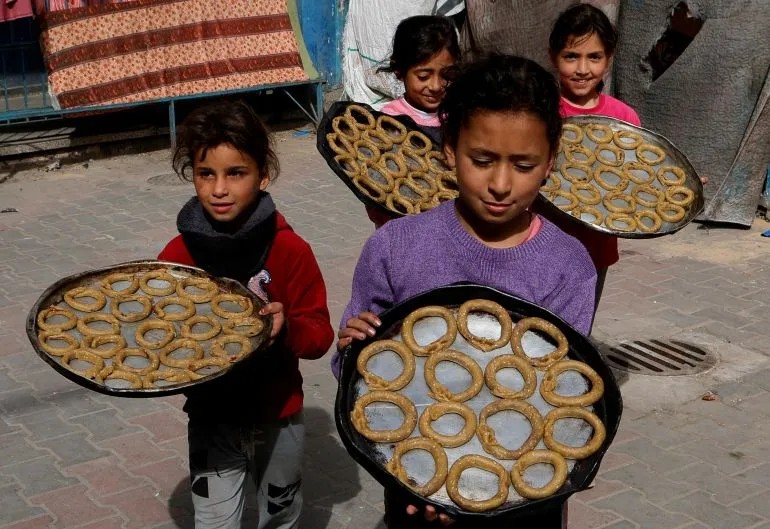 - 加薩的巴勒斯坦人將再次慶祝開齋節,但幾乎沒有食物可吃,因為在以色列阻止所有食物和其他貨物進入該飛地近一個月後,齋月即將結束。