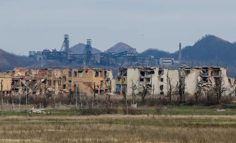圖中顯示的是被遺棄的馬林卡鎮(Maryinka),該鎮在頓內茨克的俄烏衝突中被摧毀(路透社)