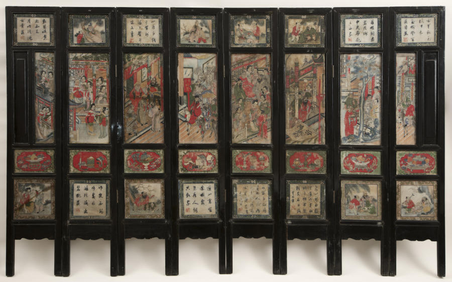 這次展覽從香港大學美術博物館的館藏中甄選了幾件由八個部分組成的藏品,以展示中國藝術和工藝中系列敘事的多元性和豐富性。除了敘事結構外,這些由八個部分組成的物件也可被視為述事的主軸。它們參照神話的宏觀世界,構建出自身充滿細節的小宇宙,從而形成一個不斷相互參照的關係網絡。