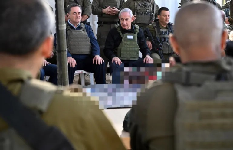 以色列陳軍總參謀長埃亞勒·扎米爾、以色列總理內塔尼亞胡及其國防部長卡茨在作戰室追蹤以色列最近對也門胡塞武裝陣地發動的攻擊
