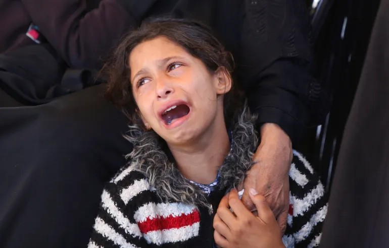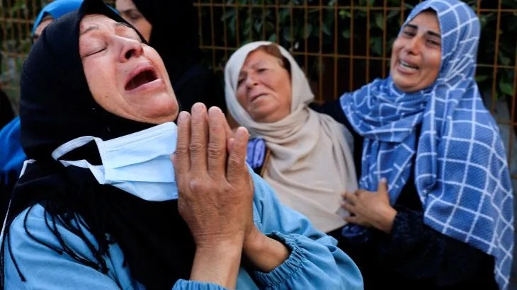 圖:加薩走廊的巴勒斯坦人哀悼逝去的親人