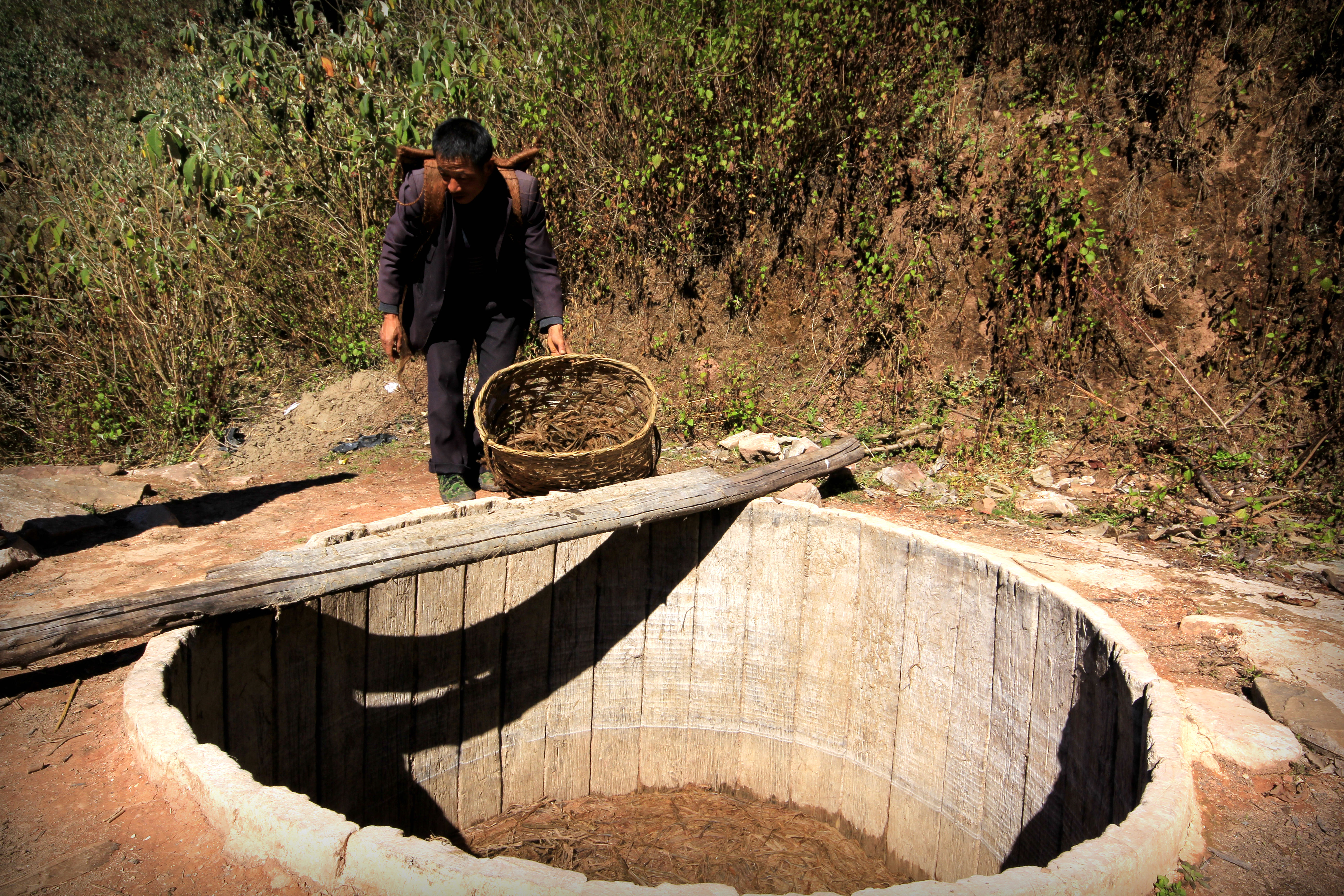 每年的農曆五月左右,造紙的農戶就會到山上的竹林中砍來散葉的嫩竹,用篾刀剃枝,開腸破肚,段出大約1米5左右的竹條並紮成捆,按十比一的比例將竹條和生石灰一起放入麻塘中漚制。漚制兩個月左右,放去石灰水,去渣,加水清洗,用鋤頭反復攪拌清洗後的竹條放置在發酵坪上,再用酸草等物覆蓋上進行發酵。兩個月後竹條充分腐爛,待生產備用。在舀紙前,將發酵後的竹料放到腳碓裏舂,直至將竹料碾壓成粉末狀方可,舂好的竹料倒入舀料池中用拱盤反復攪拌,用竹竿用力打水,將顆粒竹料打爛,撈出粗料,就可進行舀紙了。在舀紙前加入事先準備好的滑水,一種用仙人掌泡制紙藥,就可用簾床進行舀制。舀制就是所謂的抄紙,它是整張草紙的關鍵環節。抄紙的師傅一般都會在抄之前進行祭祀,那個叫蔡倫的人就是他們心中的神。但是即便有神給力,也得小心才是,任何誤判都會讓一槽紙漿抄篩不起。