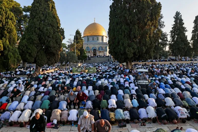 穆斯林在被佔領的耶路撒冷的阿克薩清真寺參加宰牲節第一天的特別晨禱(法新社)