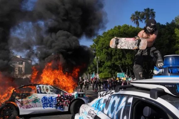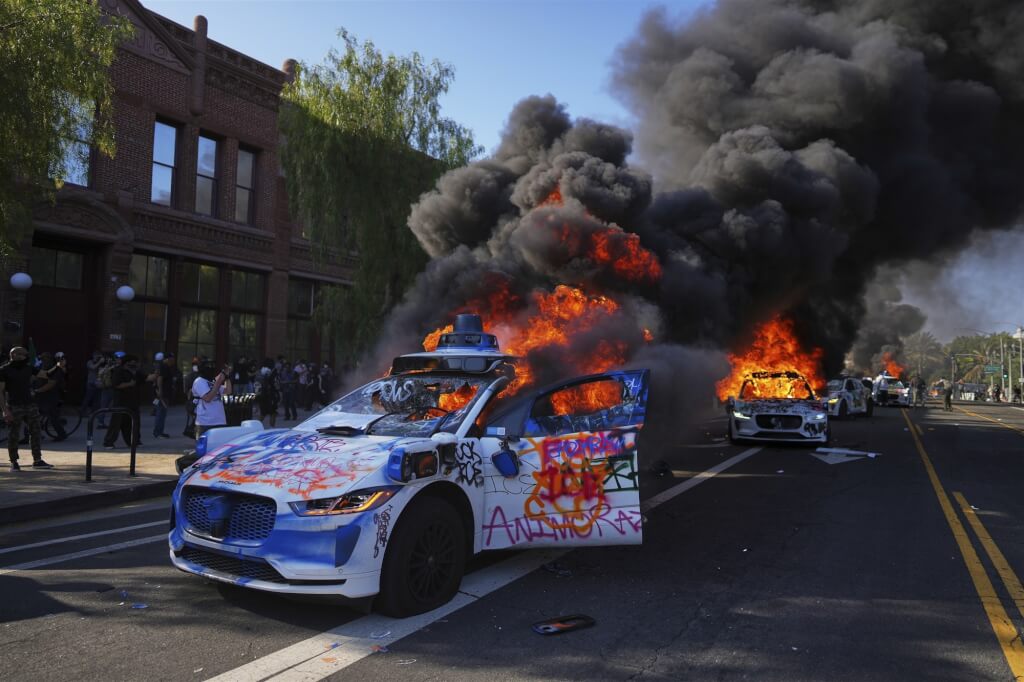 反國民兵抗議升級 無人駕駛計程車遭焚暫停洛杉磯服務