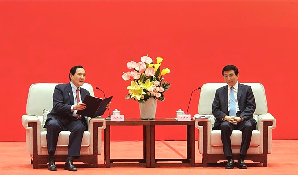 王滬寧提到,「馬英九先生素有民族情懷,認同兩岸都是中國人,堅持九二共識、反對台獨、島內愛國統一人士,持續為實現國家統一民族復興努力」。