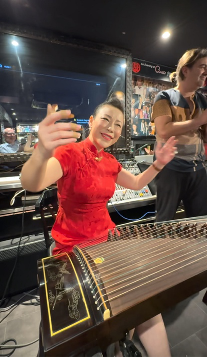 兩位音樂家一位以中國傳統器樂為根基,一位則以西方古典聲樂為核心,在「中國之夜」的舞台上,他們的合作不僅是中西合璧的音樂實踐,更是文化交流的美好展現。她們的專業與默契,讓整場演出充滿感染力,打動了來自不同文化背景的觀眾。