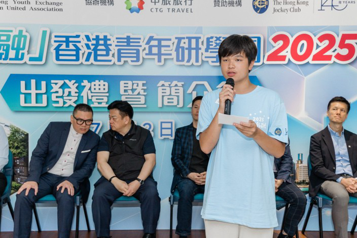 出發禮上,香港青年交流促進聯會執行主席、籌委會主席吳德龍先生致歡迎辭表示,本次研學團不僅是一場學習之旅,更是一次拓寬國際視野、激發領袖潛能的成長契機!希望同學們在研學期間能把握好奇心、開放心及責任心,更能成為香港與內地青年交流的橋樑。學生代表,就讀天主教崇德英文書院中四級的黎佑同學表示最期待的是到南京體育學院和參觀上海的體育場館,期望能了解最新的體育技術發展、運動文化與特色;同時感謝主辦機構香港青年交流促進聯會的精心籌備及贊助機構香港賽馬會在活動經費上的慷慨支持,讓團員能安心探索祖國的科技發展與文化底蘊。