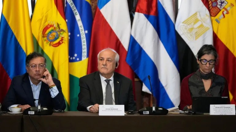 本週早些時候,海牙集團在哥倫比亞首都波哥大主辦了一場約30個國家的會議,其中包括中國、西班牙和卡達。聯合國特別報告員弗蘭切斯卡·阿爾巴內塞也出席了會議,她稱此次會議是「過去20個月以來最重要的政治進展」。