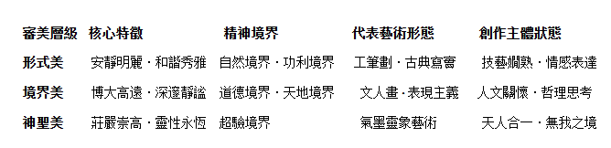 境界美(高格之美):其特質在於創造“高遠精神境域”,表現為“淩空高蹈、悲憫天地的博大情懷”,能開拓“博大渾闊、深邃高遠、靜謐高妙的詩性精神空間”。這種美對應馮友蘭“天地境界”與張世英“審美境界”,是藝術家“遠離自然境界、跨越功利境界、致遠道德境界”的精神投射。