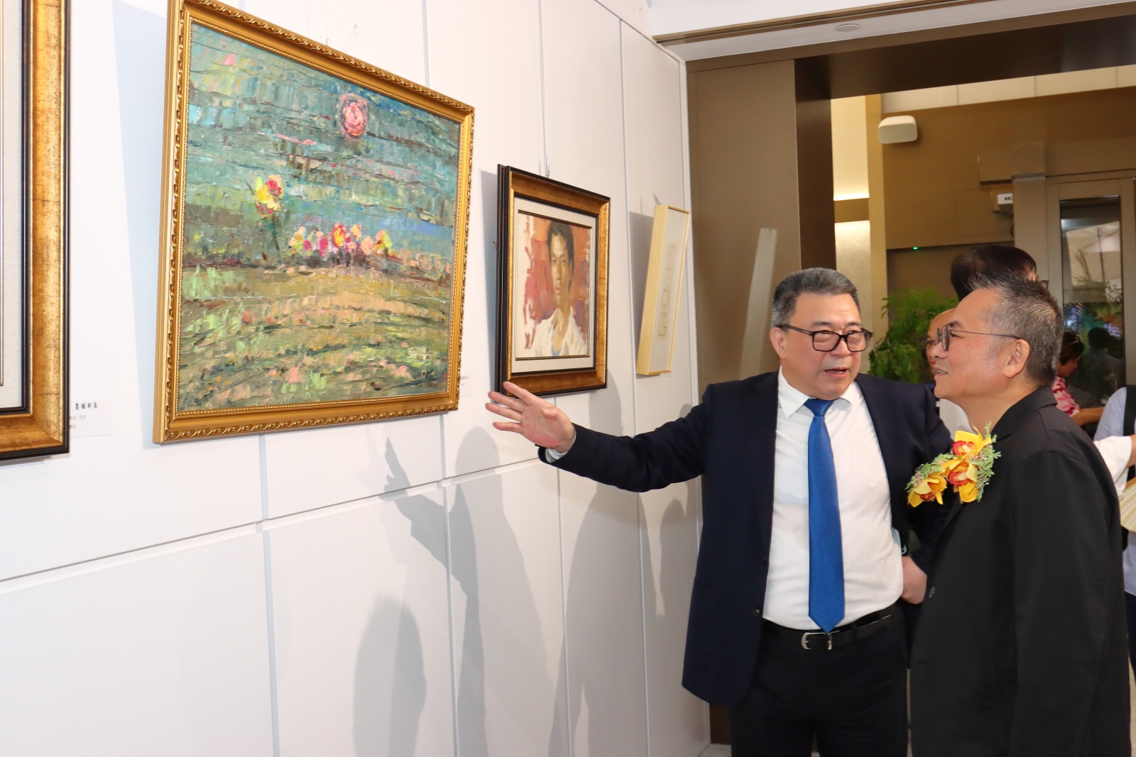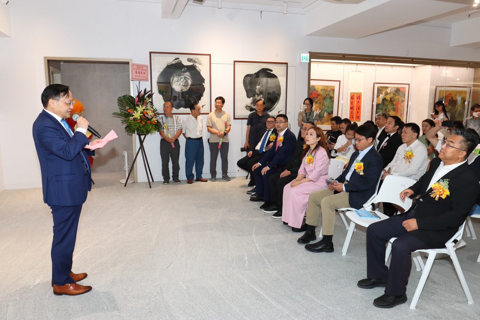(中華新聞通訊社/中華時報香港訊)2025年7月27日,由香港星河畫藝會與阜博集團聯合主辦,中山大學香港高等研究院及中國文化基金會支持的”墨韻新象——當代藝術名家作品展”在香港文鹹道西街18號盤穀銀行隆重開幕。此次展覽彙聚了多位當代藝術名家(包括:金耀基、伍汝 、徐裏 、祁海峰 、王思強 、石果 、賀丹晨 、劉思東 、寧克平 、王元)的精品力作,不僅為觀眾帶來一場視覺盛宴,更引發了對藝術在科技與金融時代中的獨特價值的深刻思考。